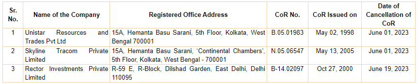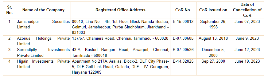 Two NBFCs each from Maharashtra, Tamil Nadu, and West Bengal, as well as one each from Andhra Pradesh, Telangana, Jharkhand, Haryana, and Delhi, have surrendered registration certificates.