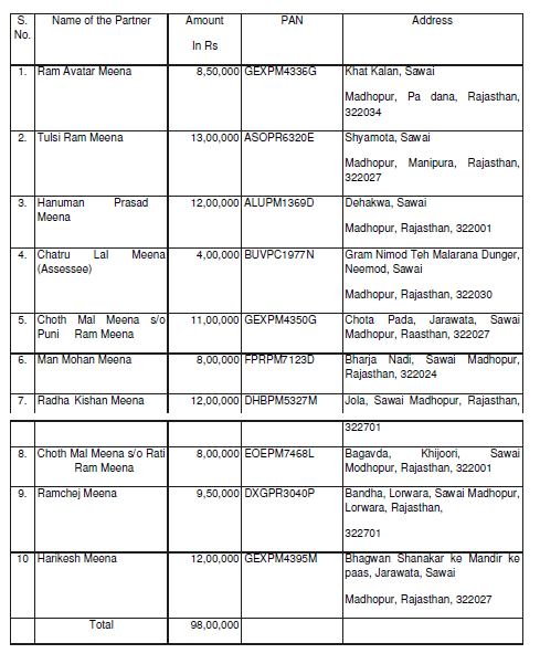 The assessee claimed cash belonged to M/s Meena Construction Works, a partnership firm. He was one of the partners in the firm. The cash was the total contribution of 10 partners, and he was carrying the cash with the intention of machinery purchase from Odisha. Unfortunately, upon reaching Bhubaneshwar it was discovered that the vendor, Shri Ravi Jain proprietor of Shri Mahaveer Associates from whom the said old second-hand machineries was to be purchased was not available due to last minute emergency.