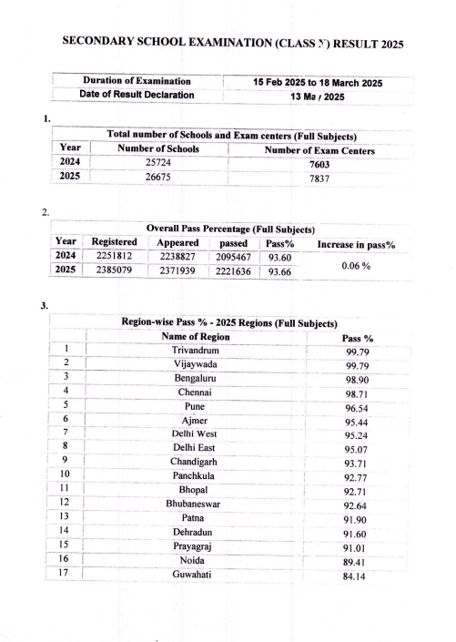 Breaking: CBSE Class 10 Result Out: Highest Pass percentage from Trivandrum