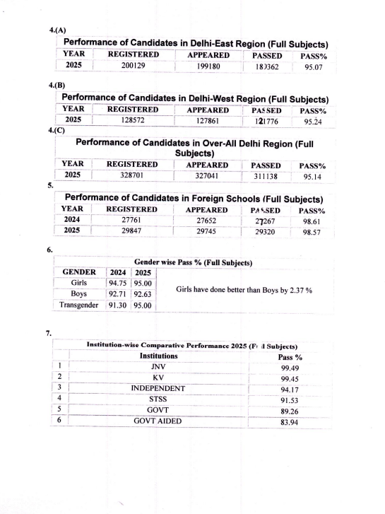 Girls outshine boys by over 2.37% points; 95% girls passed the exam.