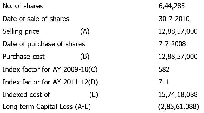 7. We find that SKR BPO had been amalgamated with Serco BPO with effect from 7/7/2011 vide order of approval of merger passed by the Hon’ble Bombay High Court dated 5/3/2013. The computation of long term capital loss on sale of shares of M/s Sparsh BPO Services Pvt Ltd arose in the instant case, only due to benefit of indexation that is statutorily available to an assessee. The workings of the said long term capital loss are as under:-