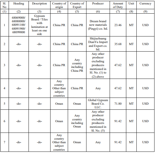 The Central Board of Indirect Taxes and Customs (CBIC) has imposed Anti Dumping Duty on Gypsum Tiles via issuing Notification.