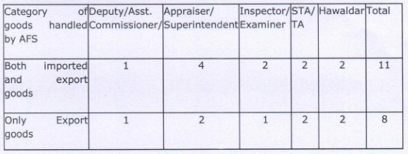 Based on the report, CBIC has obtained the approval of the Competent Authority for the staffing norms for sanction of posts on cost recovery basis at AFS and also for the performance norms that would make an AFS eligible for consideration of exemption from the payment of cost recovery charges. The recommendations as approved are mentioned as below,-