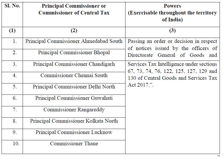 “3A. Notwithstanding anything contained in paragraph 3, the Additional Commissioners or the Joint Commissioners of Central Tax, as the case may be, subordinate to the Principal Commissioners of Central Tax or the Commissioners of Central Tax, as specified in column (2) of Table V, are hereby vested with the powers as specified in the corresponding entry in Column (3) of the said Table.”;