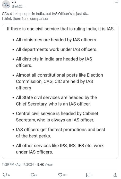 Another post read, “CA’s 4 lakh people in India..but IAS Officer’s is just 4k..I think there is no comparison.”