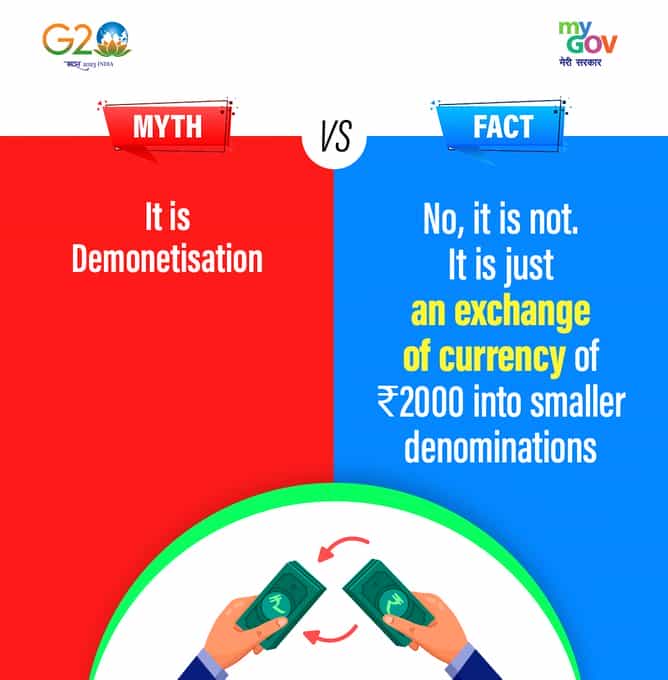 Setting the record straight! The exchange of Rs.2000 notes into smaller denominations is NOT demonetisation. It’s simply a step to facilitate smoother transactions and meet evolving needs.