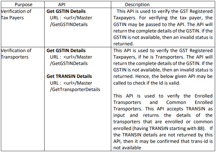 Hence, it is requested to use the API ‘Get TRANSIN Details’ also, in addition to ‘Get GSTIN details’ API. As ERP system cannot distinguish between registered and enrolled transporter IDs, hence the ERP may be modified to first call the ‘Get GSTIN Details’ to verify the transporter Id and in case the status is invalid then call ‘Get TRANSIN details’ API before finally concluding the status of the transporter Id.
