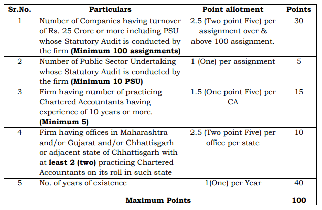 Eligibility criteria are mentioned under the point allotments. Firms will be shortlisted after considering eligibility criteria, points obtained,  etc.