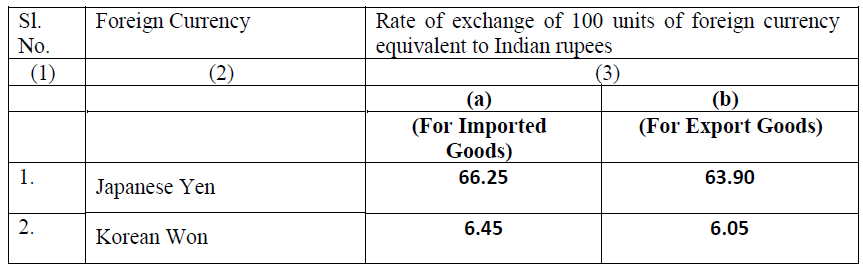 In exercise of the powers conferred by section 14 of the Customs Act, 1962 (52 of 1962), and in supersession of the Notification No.02/2022-Customs(N.T.), dated 6thJanuary, 2022 except as respects things done or omitted to be done before such supersession, the Central Board of Indirect Taxes and Customs hereby determines that the rate of exchange of conversion of each of the foreign currencies specified in column (2) of each of Schedule I and Schedule II annexed hereto, into Indian currency or vice versa, shall, with effect from 21st January, 2022, be the rate mentioned against it in the corresponding entry in column (3) thereof, for the purpose of the said section, relating to imported and export goods.