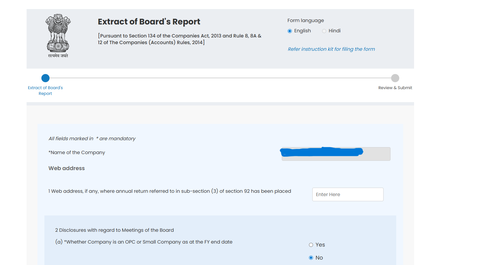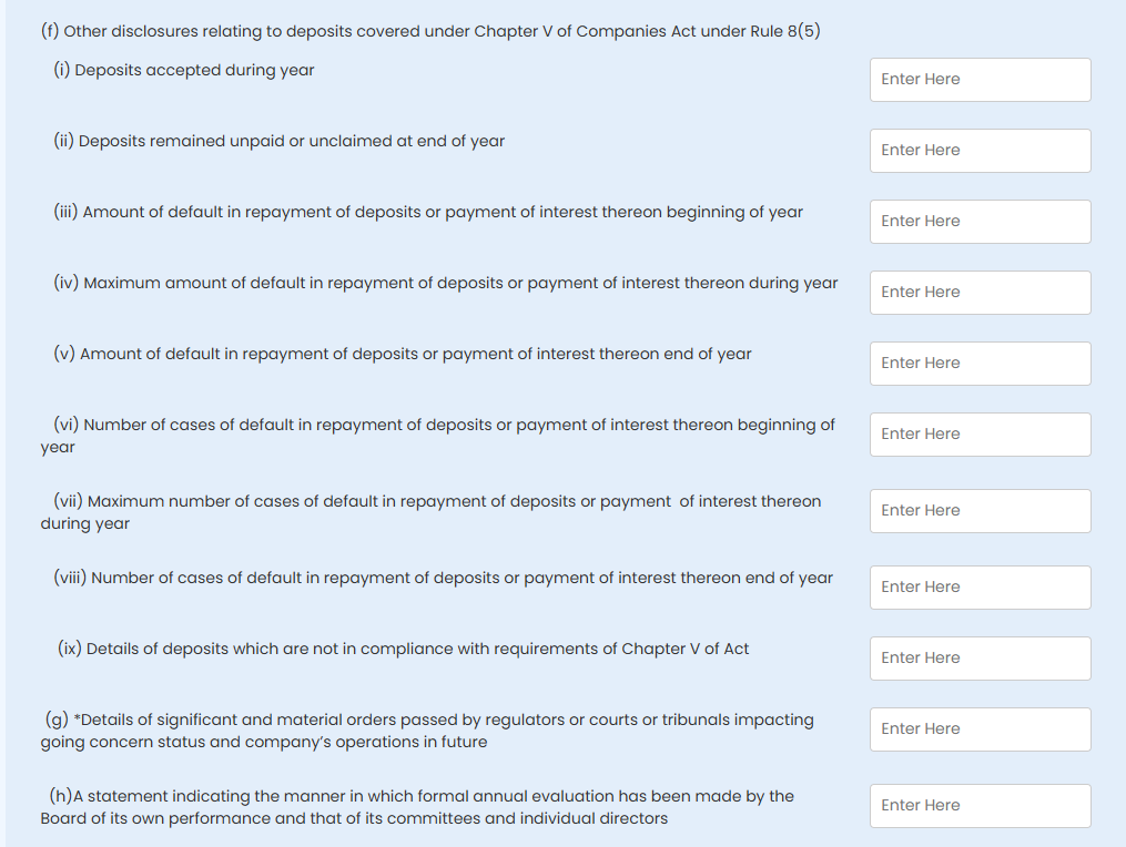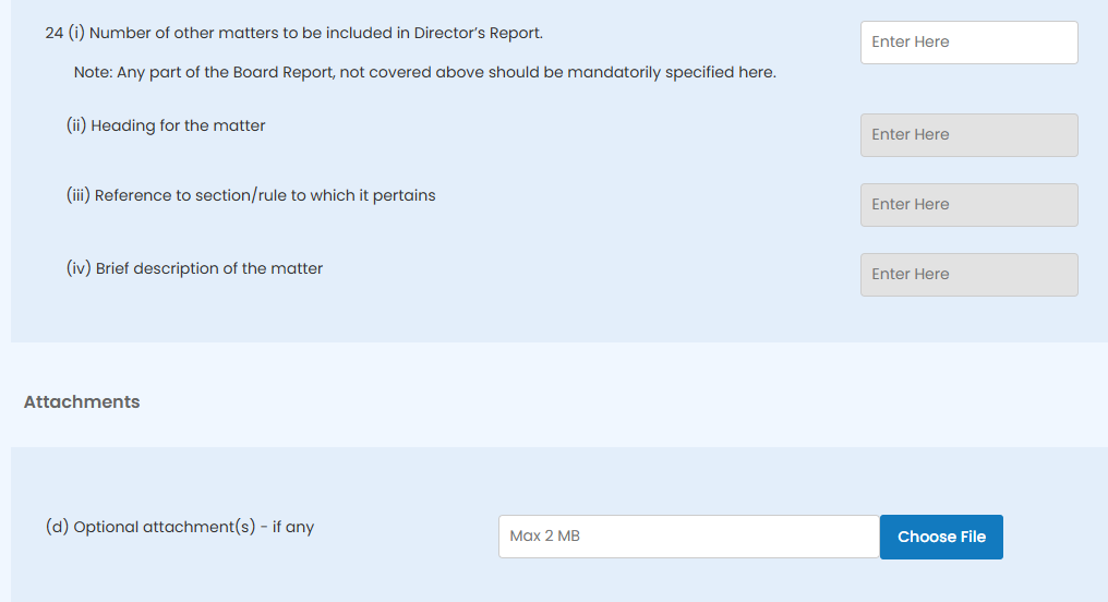 MCA’s e-filing portal now requires companies to fill specific fields for “Extract of Board’s Report” when submitting Form AOC-4. These fields are standardised, follow a point-based system as per MCA’s schema, and require structured input to ensure consistency.