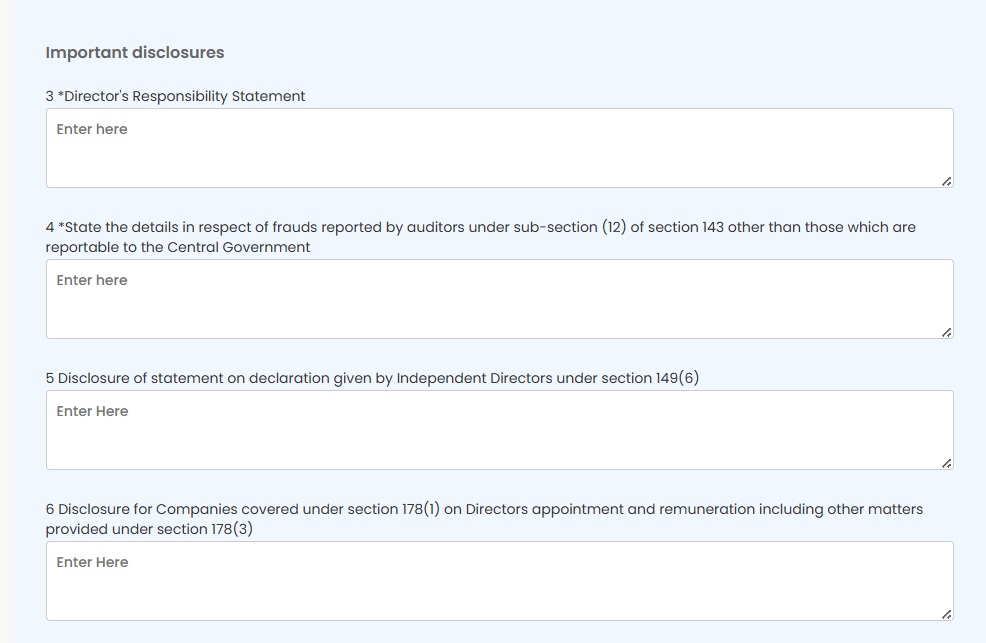 Under MCA V3, these disclosures are tagged and standardised, and interlink seamlessly with the Director’s Report section in Form AOC-4 (and AOC-4 XBRL wherever applicable).
