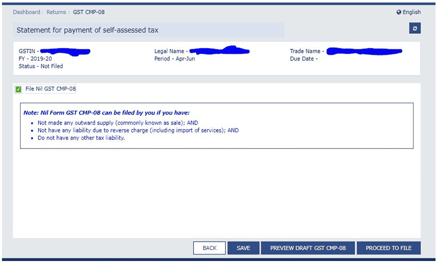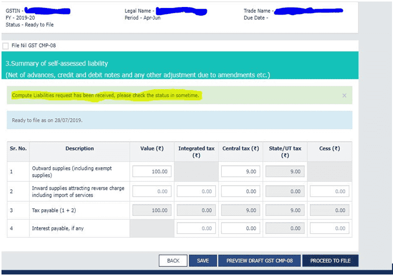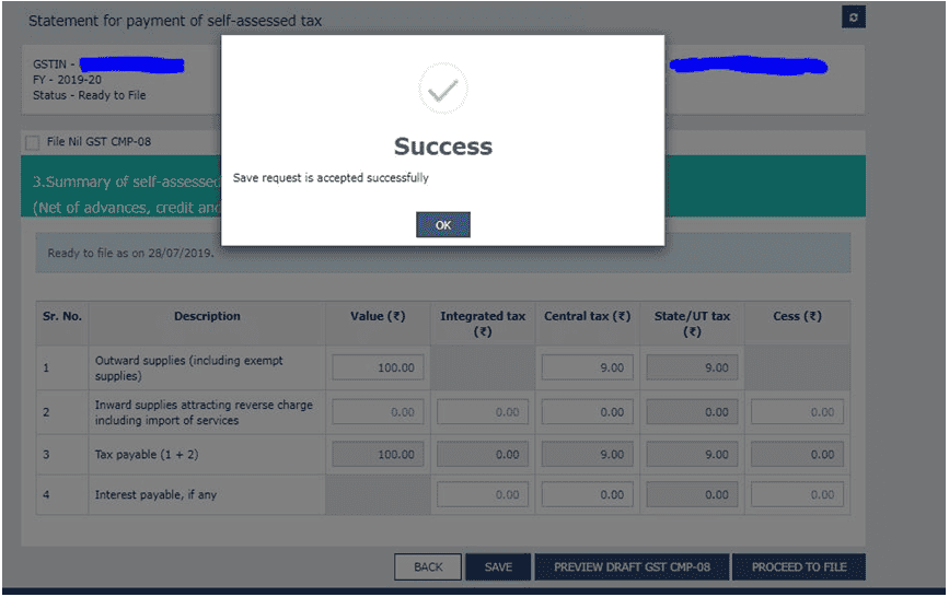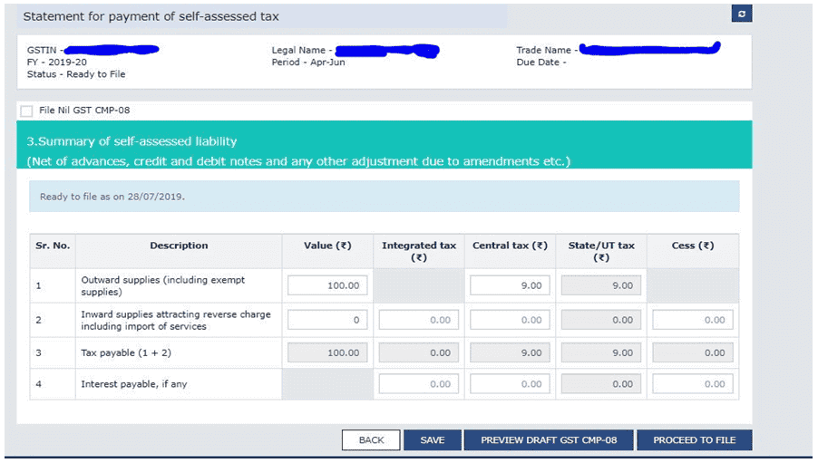 VII. After clicking on Preview Draft GST CMP-08 then click on Proceed to File tab.
