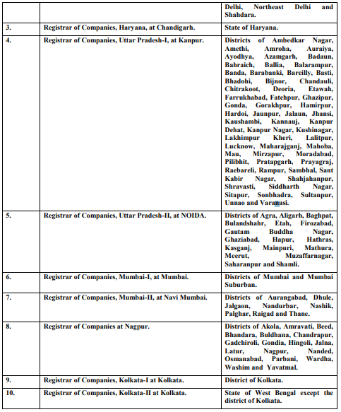 The Central Government, using its power under subsections (1) and (2) of section 396 of the Companies Act, has set up 10 ROC officers across India