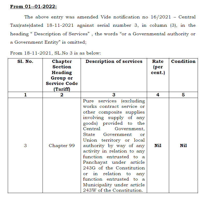 In view of the above from 18-11-2021, in view of the amendment mentioned above omitting the word ‘Government authority’, the services provided to the applicant are not eligible for exemption under Sl.No 3 of Notification no 12/2017 dated 28-06-2017.