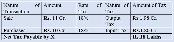 Here the difference in sale and purchases is Rs. 1 Cr and this is the Margin of X and in statutory language one can say it is “value addition” and the net tax payable is Rs. 18.00 Lakhs and it is exactly the 18% of the value addition i.e., Rs. 1 cr.