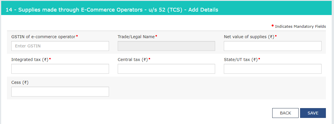 In this table, you can add details of taxable outward supplies made to e-commerce operator.