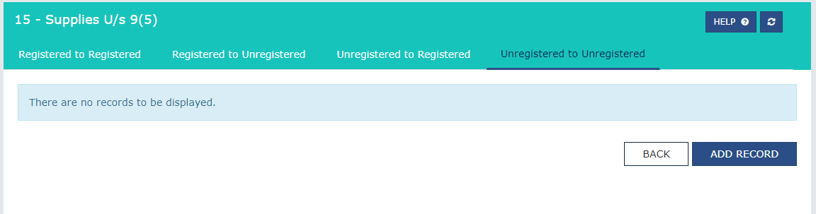 ‘ADD RECORD’ – You can add document details for taxable outward supplies on which e-commerce operator is liable to pay tax under section 9(5) of the Act related to unregistered supplier and registered recipient.