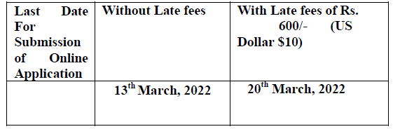 13. Late Fee is applicable from 14th March, 2022 to 20th March, 2022.