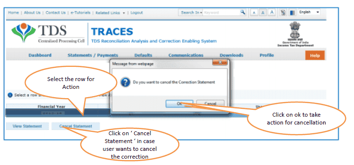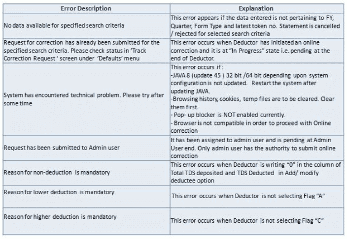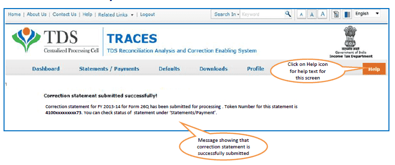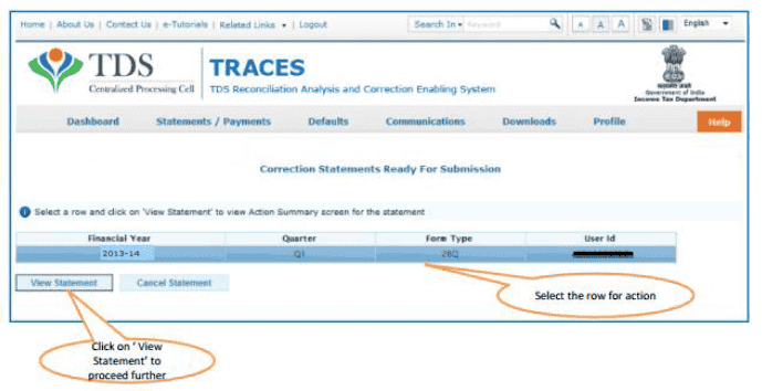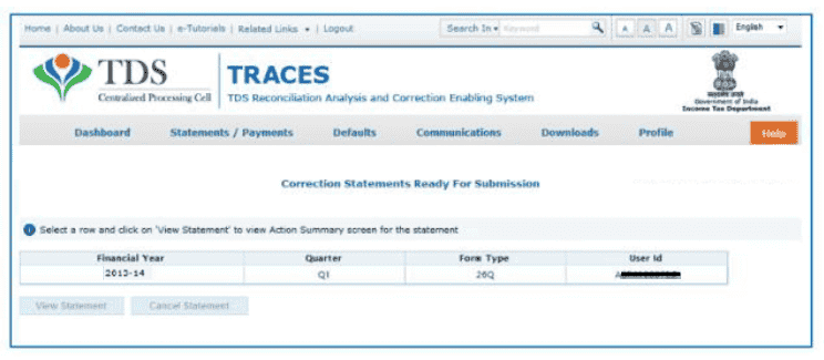 9. Rejected-Statement has been rejected by TDS CPC after processing. Rejection reasons will be displayed in ‘Remarks’ column.