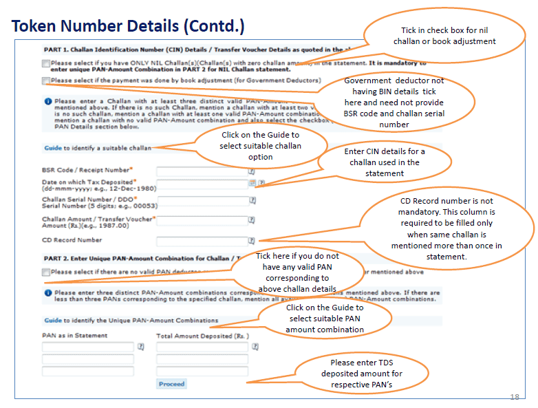 2. Token Number must be of the regular statement of the FY, Quarter and Form Type displayed on the screen.
