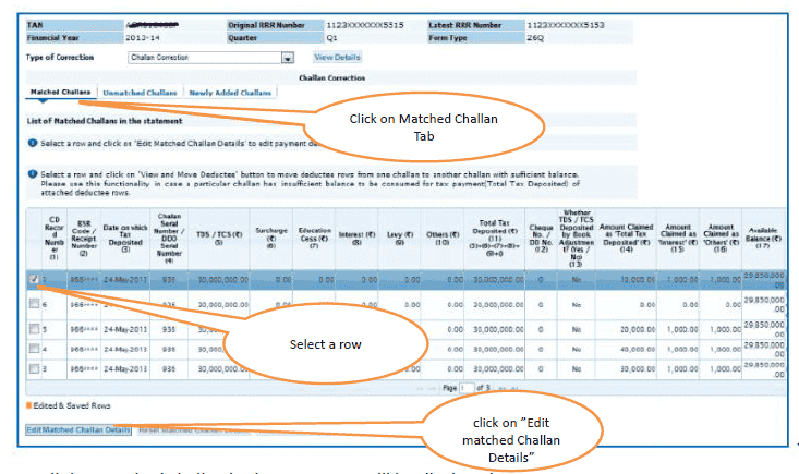 1. All the Matched challan in the statement will be displayed.