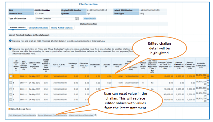 Prior to 2013-14, only unmatched challans will be editable and not BINs.