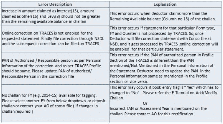 All type of corrections like Personal information , Deductee details and Challan correction can be made using Online correction functionality available from FY.2007-08 onwards depending upon the type of correction.