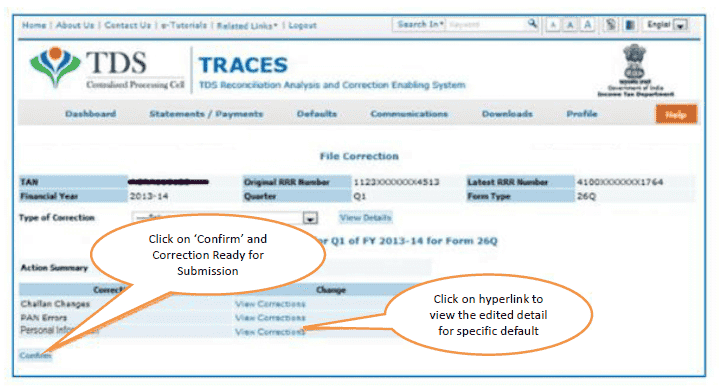 Free of Cost : TRACES does not charge any fee for doing online correction.