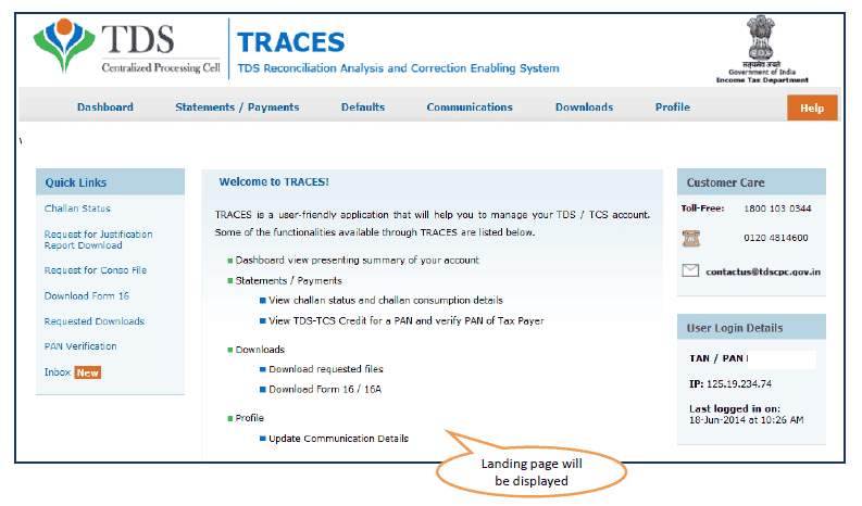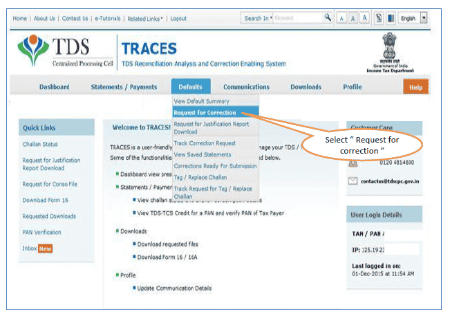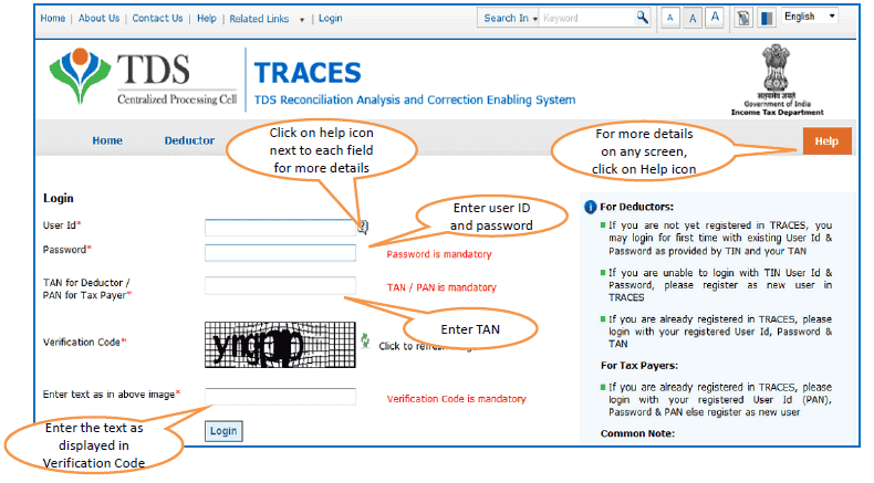 Step 1 : Login to TRACES website.