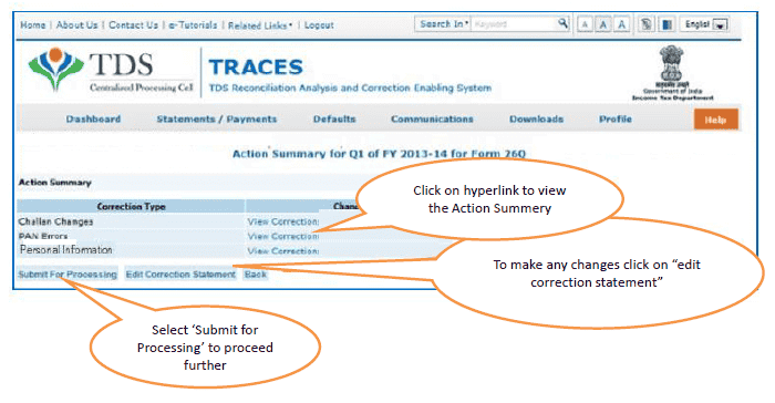 8. Processed-Statement has been processed by TDS CPC (either for Form 26AS or for defaults)