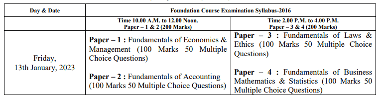 5. The Foundation Examination will be conducted in M.C.Q Mode through online from home.