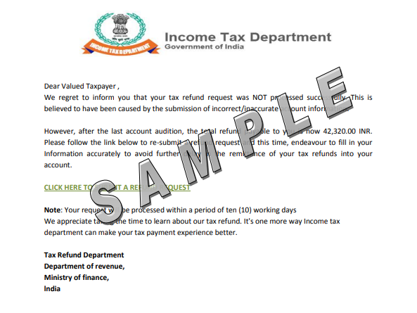 The Income Tax Department has clarified that it does not request detailed personal information through e-mail. It also does not send email asking for PIN numbers, passwords, or similar access information related to credit cards, banks, or other financial accounts.