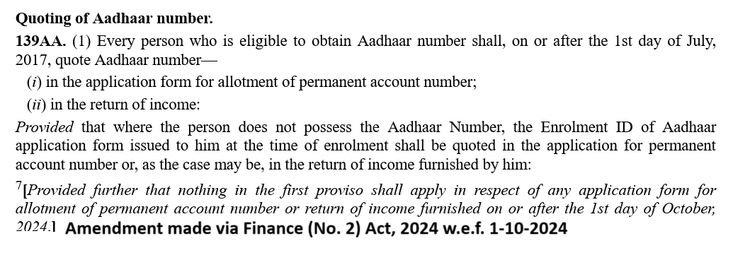 ITR cannot be filed for FY 24-25 if you do not have Aadhaar Number