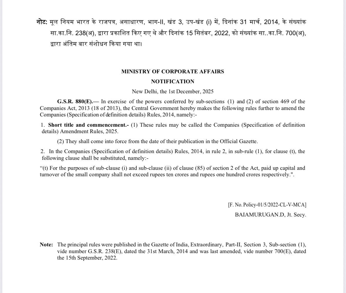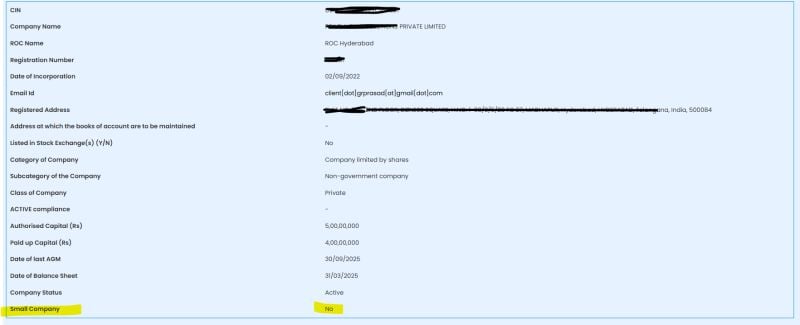 MCA has updated Company Master Data to clearly display a company’s Small Company status, making compliance simpler and more transparent.