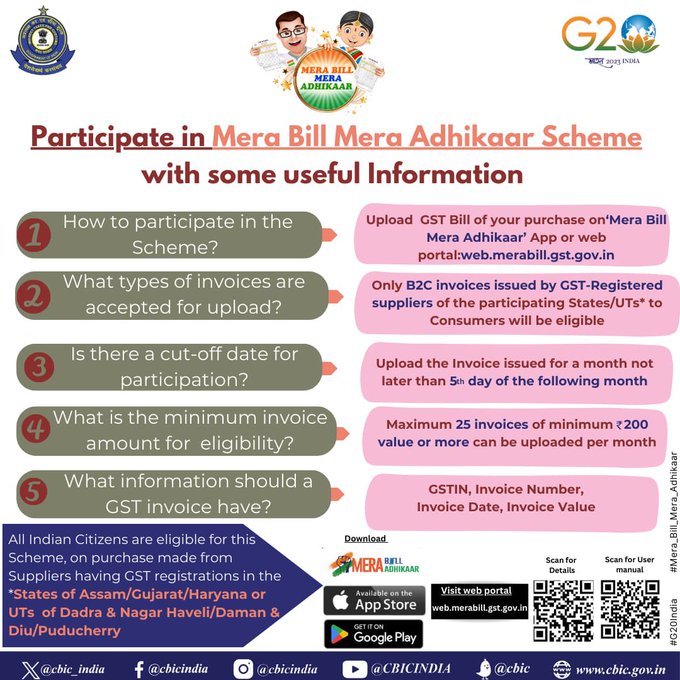The Government of India, in association with State Governments, has launched an ‘Invoice incentive Scheme’ by the name ‘Mera Bill Mera Adhikaar’.