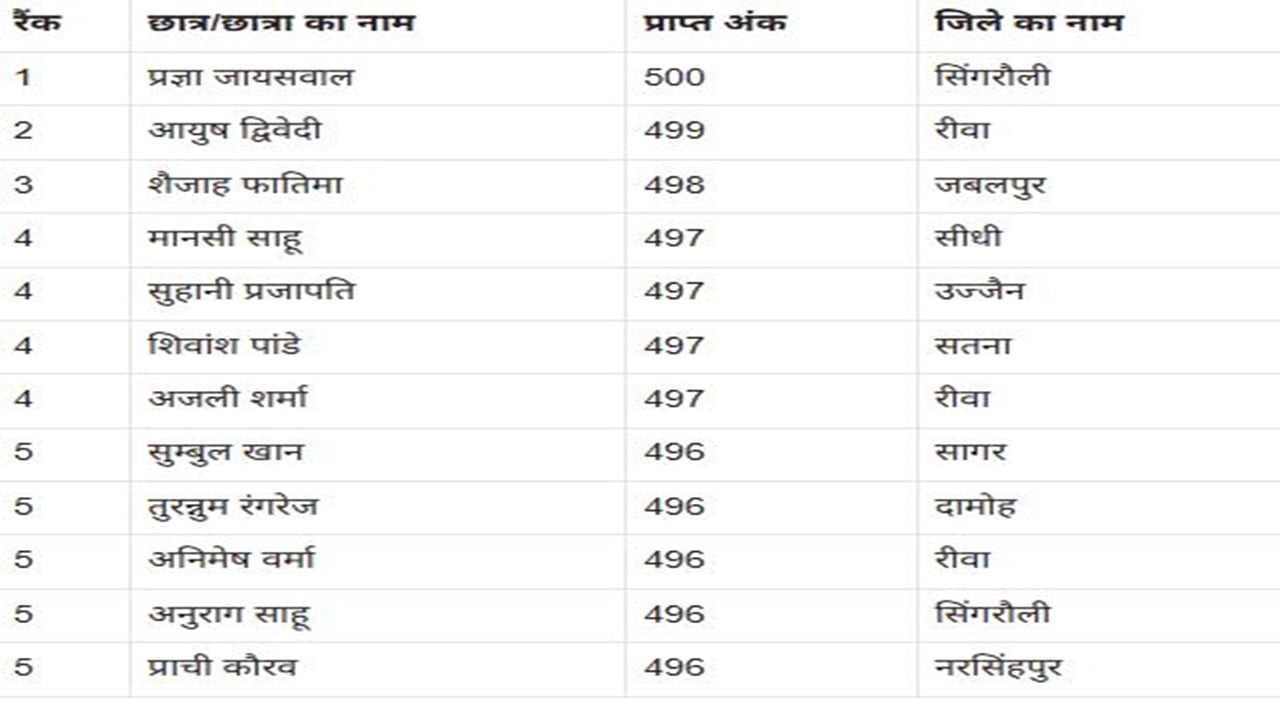 Also, in the MP Board Class 10 results for 2024, Anushka Agarwal from Mandla district secured the top position. She scored 495 out of 500 marks, making her the Class 10 topper.
