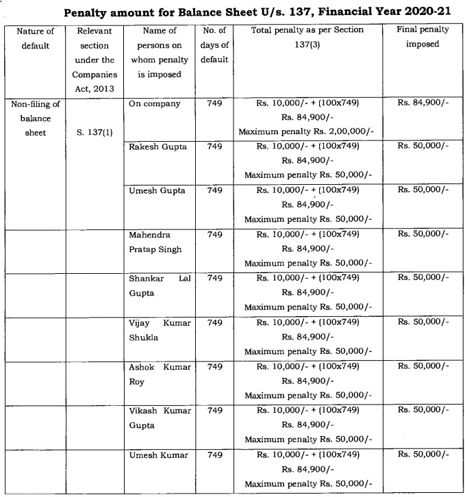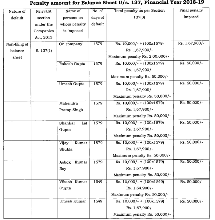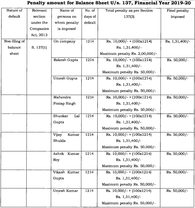 Accordingly, a penalty Rs.40 Lakhs is imposed as prescribed under Sub-section 3 of section 137 of the Companies Act, 2013.