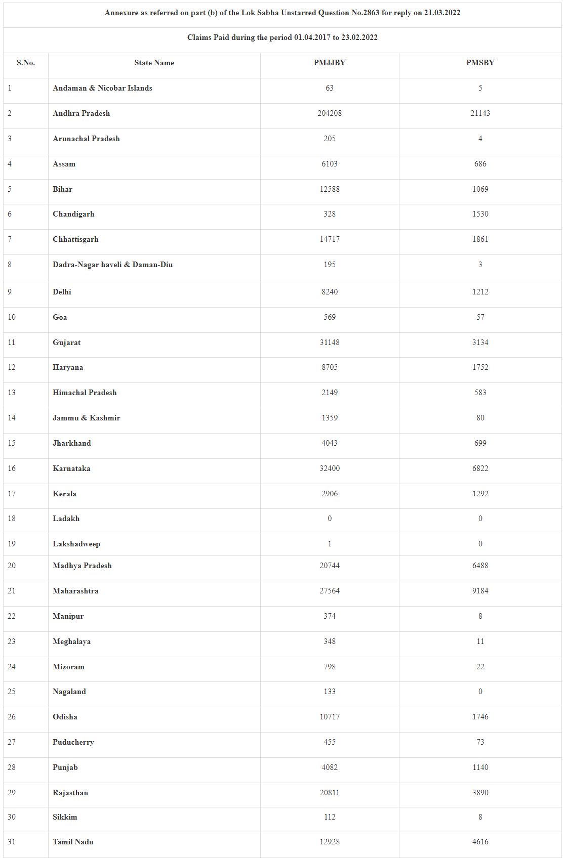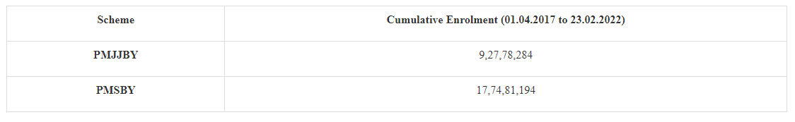 The Minister declared that state-by-state claims paid under PMJJBY & PMSBY from April 1, 2017 to February 23, 2022 have been ANNEXED.