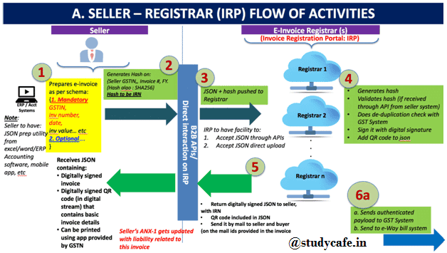 Step 5 (a)will be to share the signed e-invoice data along with IRN (same as that has been returned by the IRP to the seller) to the GST System as well as to E-Way Bill System.