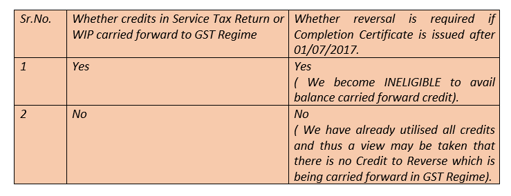 (b) Whether reversal is required when inputs were procured in Service Tax Regime but utilized after Appoinment Date ( i.e. after 01/07/2017).