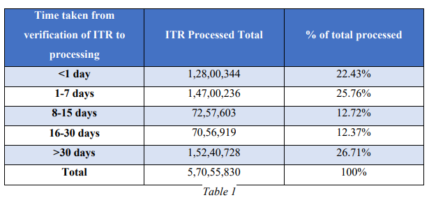 22.4% returns were processed on the same day and around 75% returns were processed in less than a month’s time in the course of the year 2021-22 (as detailed in Table 1).